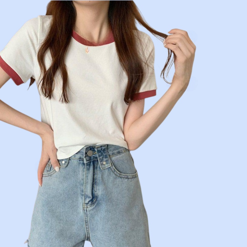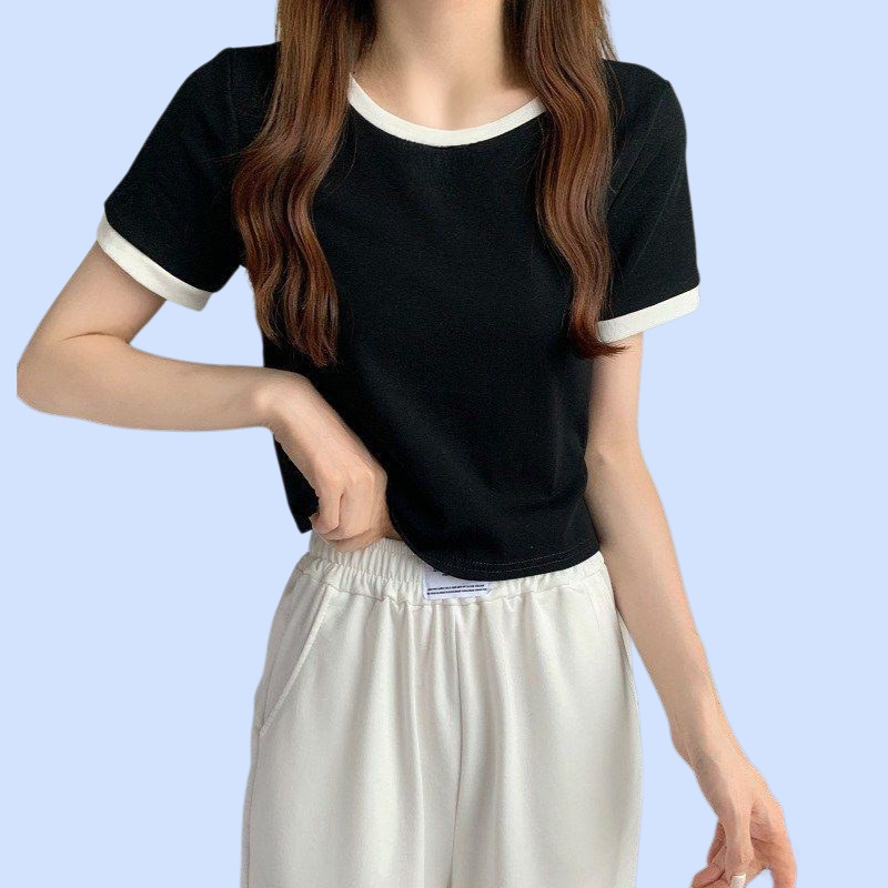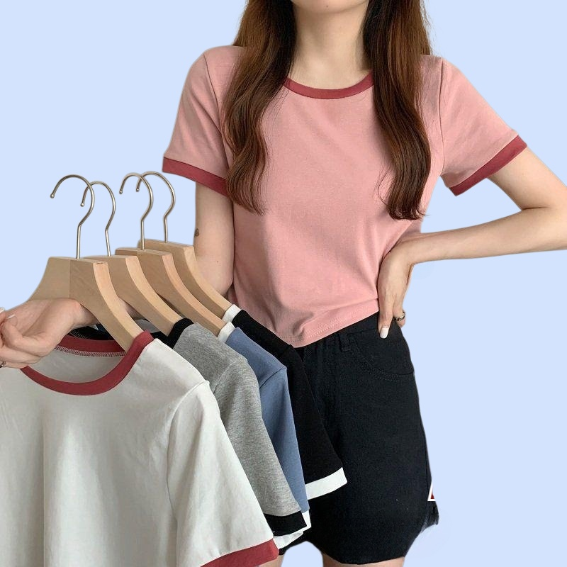 여성 슬림핏 컬러 라운드 반팔