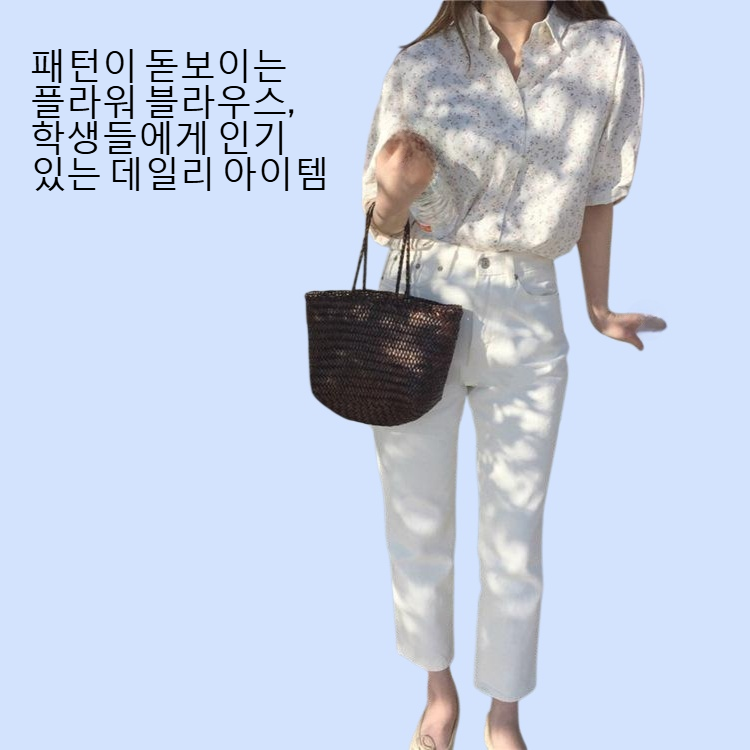 프렌치 감성 터틀넥 디자인, 플라워 패턴 포인트, 반팔로 여름에도 시원하게 착용, 데일리와 포인트룩 모두 활용 가능