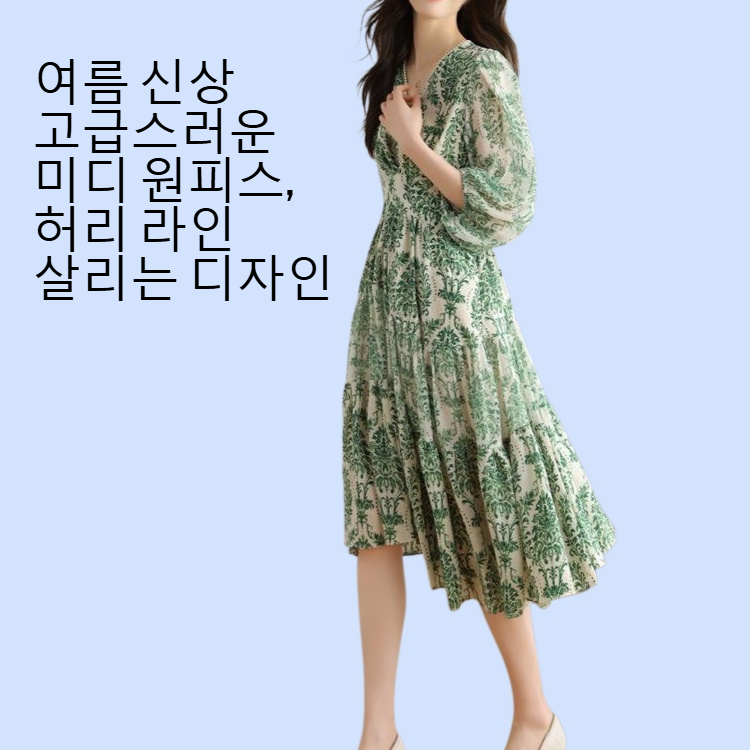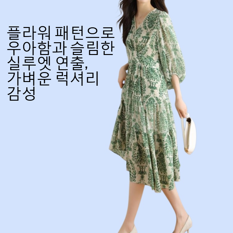 여성스러운 플라워 패턴, 미디엄 롱 길이로 체형 커버, 가벼운 소재로 편안한 착용감, 데일리룩 및 데이트룩 추천
